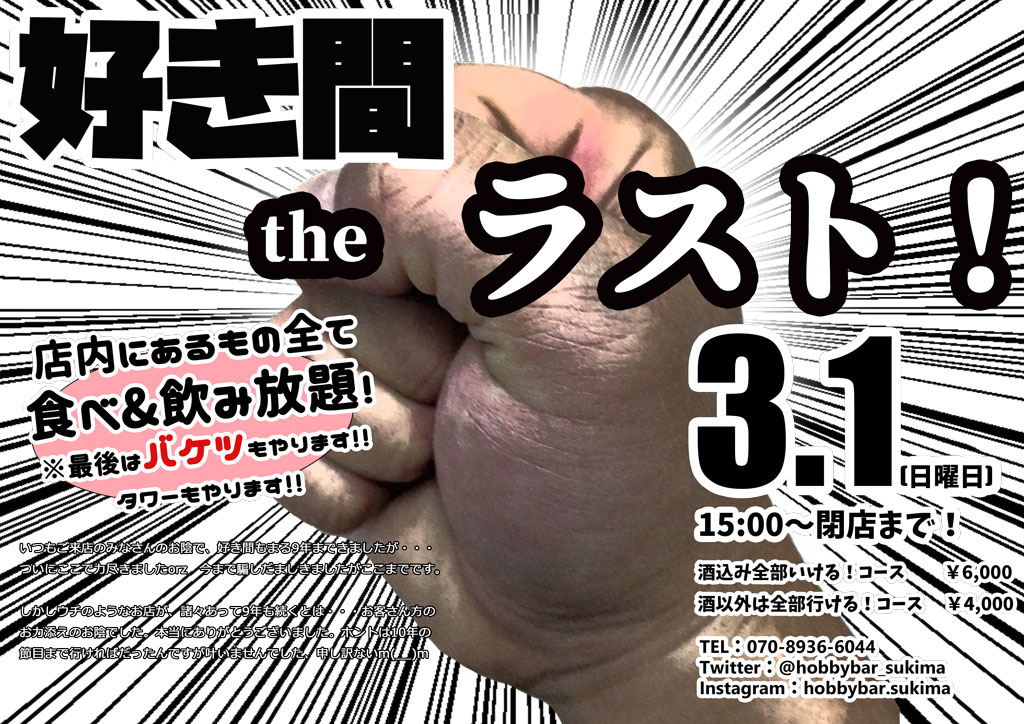 好き間、閉店します!3/1の9周年の日に終了となります。今までのご愛顧ありがとうございましたm(_ _)m